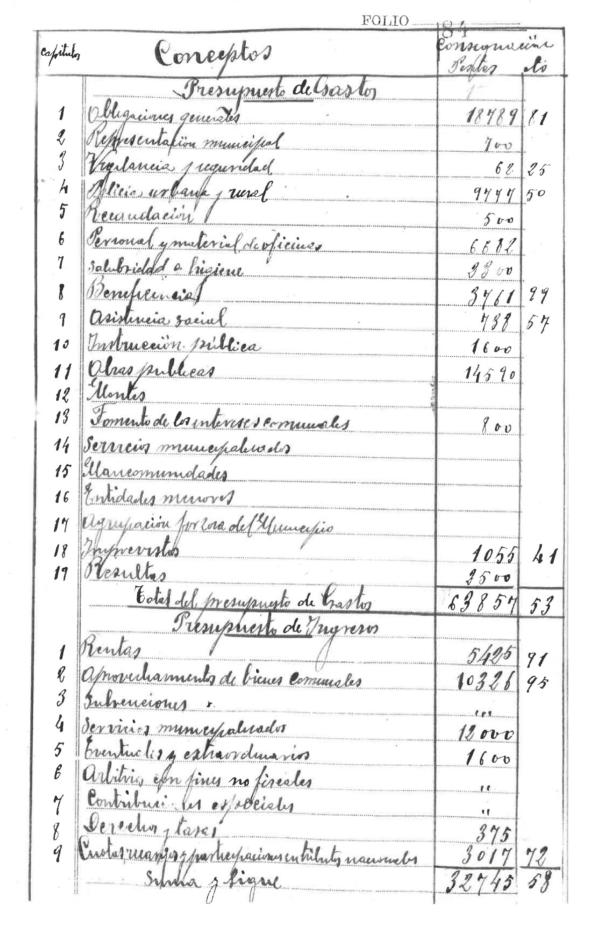 Presupuesto de gastos Ayto. de Hoyo de Manzanares. 1933